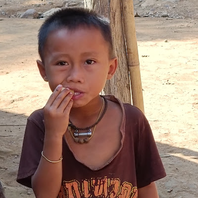 Nous partons à 6h40 avec une légère bruine et un petit brouillard. Pendant 10 km pour sommes toujours sur la route 13. Hormis lors des traversées des gros villages, la circulation est fluide et la route est relativement bonne. A Pak-Mong, nous laissons la grande route, pour emprunter une plus petite route en direction de l'est. Elle est parsemée de petites bosses. Il est 9h20 quand nous arrivons à Nong Khiaw. A 11h30, le bateau pour Muang Ngoi Neua part. Nous chargeons nos vélos et nos sacoches, et essayons de trouver une place pour nous. Il faudra attendre 45 minutes, avant son départ. Et que dire du trajet ... Nous sommes tout de même à bon port à 14h15.